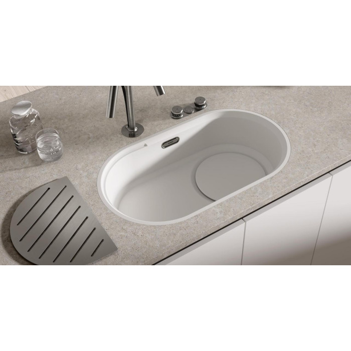 Дизайнерська преміальна модель овальної мийки з найсучаснішого матеріалу Velgranit. Це надзвичайно міцний матеріал, з високим вмістом граніту, на дотик має гладку ніби оксамитову поверхню, стійкий до високих температур та зовнішнього впливу.