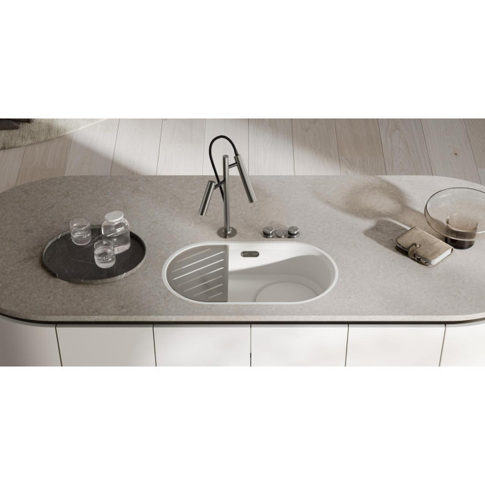 Стійка до подряпин, термостійка до 300 C та захищена ексклюзивним покриттям BLANCO PROTECTION SHIELD, OOVALON зберігає своє позачасове матове покриття на довгі роки. Доступна у двох ретельно підібраних тонах – містичному чорному та хмарно-білому – OOVALON привносить тепло та нейтральність, щоб завершити будь-який дизайн кухні. Також привертає увагу: несподівано велика кругла кришка зливу CapFlow. Повторюючи овальну форму мийки та ідеально підібрана за кольором, вона створює сміливе візуальне враження, зберігаючи при цьому повну функціональність вентилю.